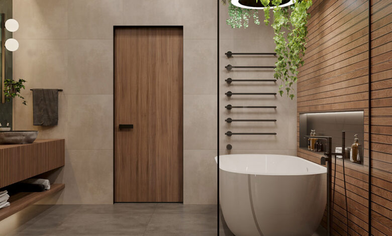 Спокойный дизайн ванной комнаты с натуральными материалами
