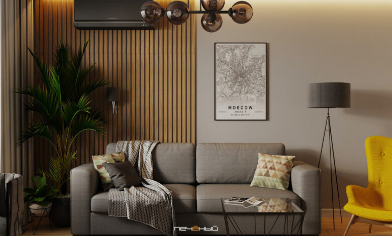 Чтобы подчеркнуть теплую атмосферу гостиной с деревянными элементами, важно правильно подобрать декор.